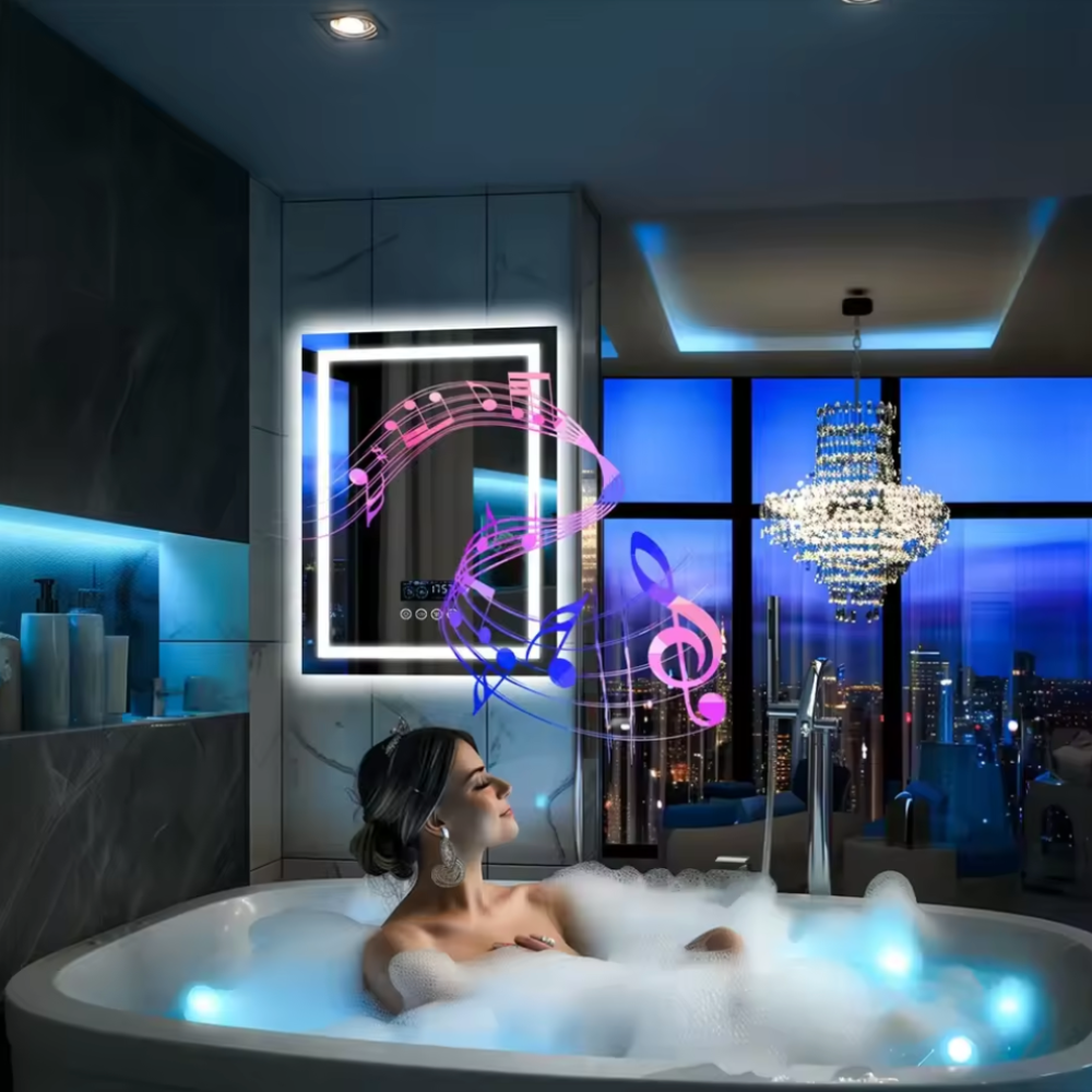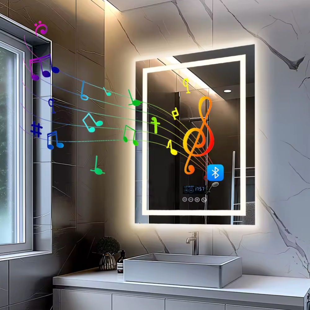 Absolutely — our mirrors include Bluetooth speakers so you can enjoy music or calls while getting ready.